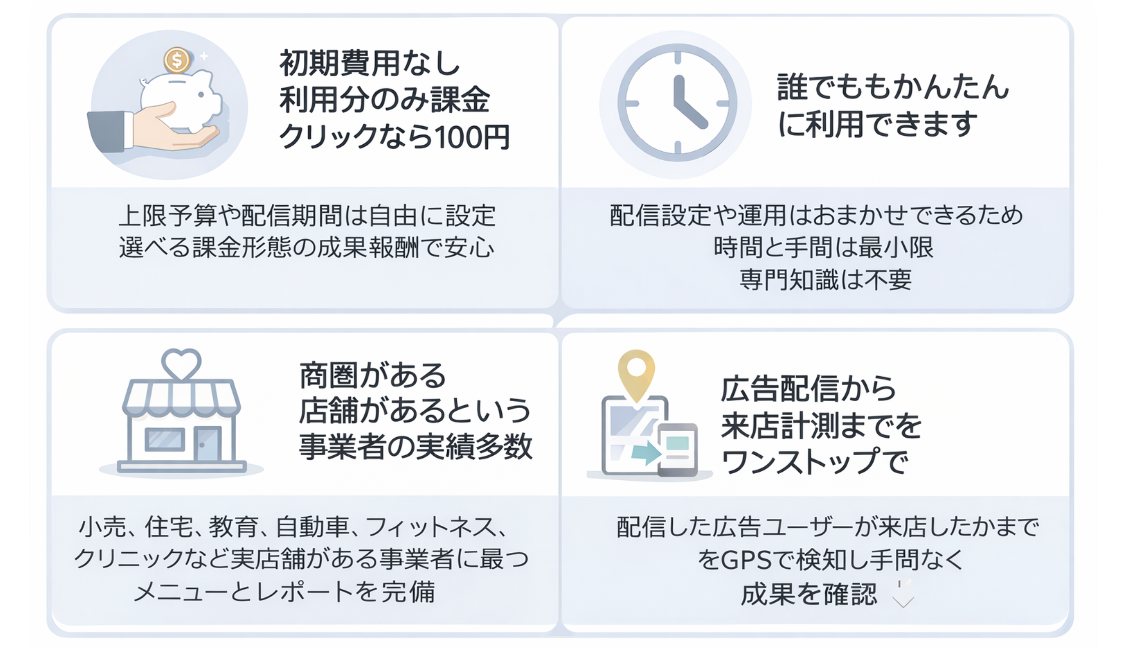 といった リアルな行動エリアベース での広告配信が可能です。